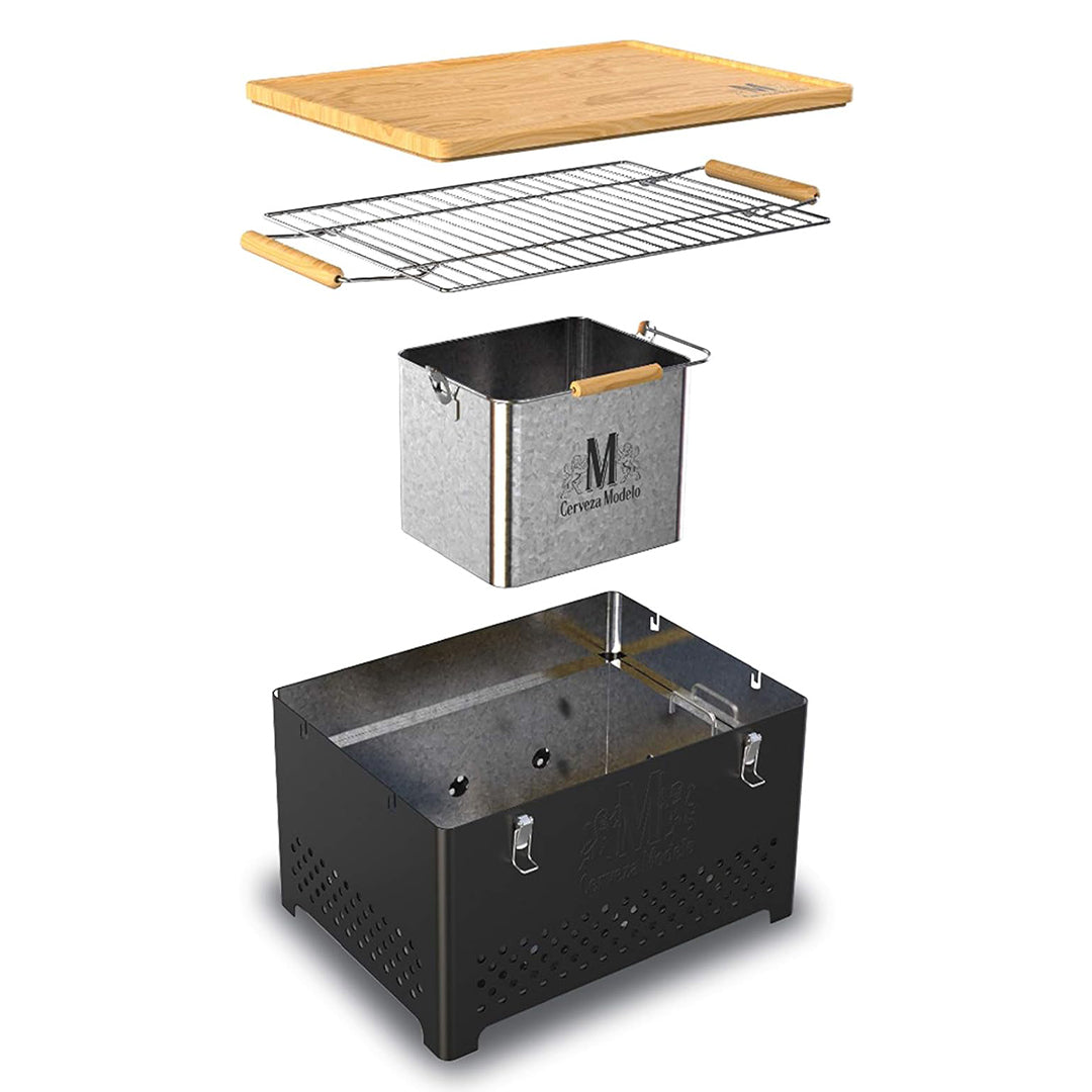 Haz de cada parrillada una experiencia completa con este asador portátil de acero inoxidable. Cuenta con parrilla ajustable, asas de madera ergonómicas y una práctica tabla para picar integrada. Ideal para asar carne, verduras o lo que se te antoje, en casa o al aire libre. Diseño moderno, resistente y fácil de limpiar con su charola removible para cenizas.