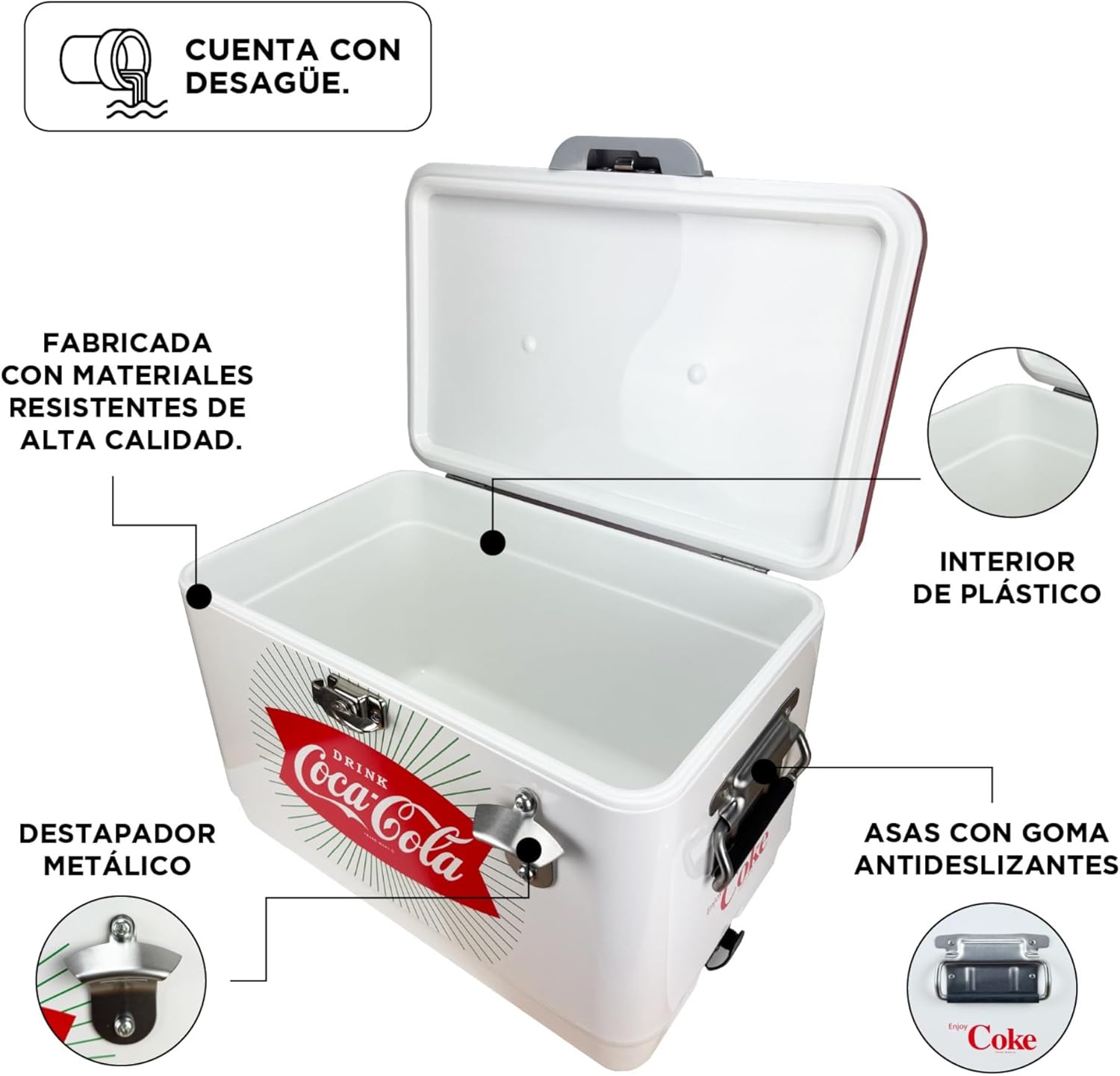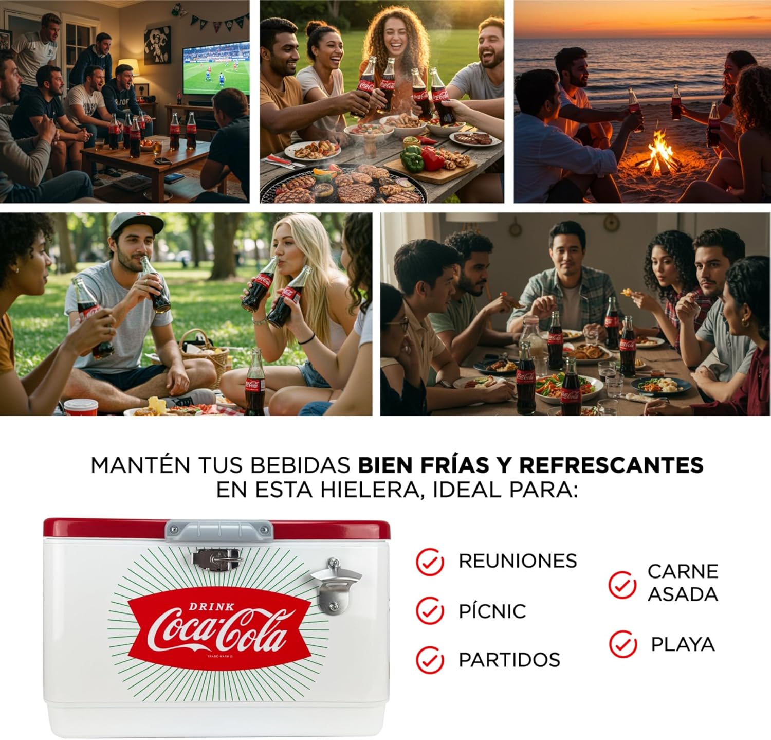 🤍 La Leyenda Clásica: Hielera Coca-Cola 30 Litros Blanco y Rojo