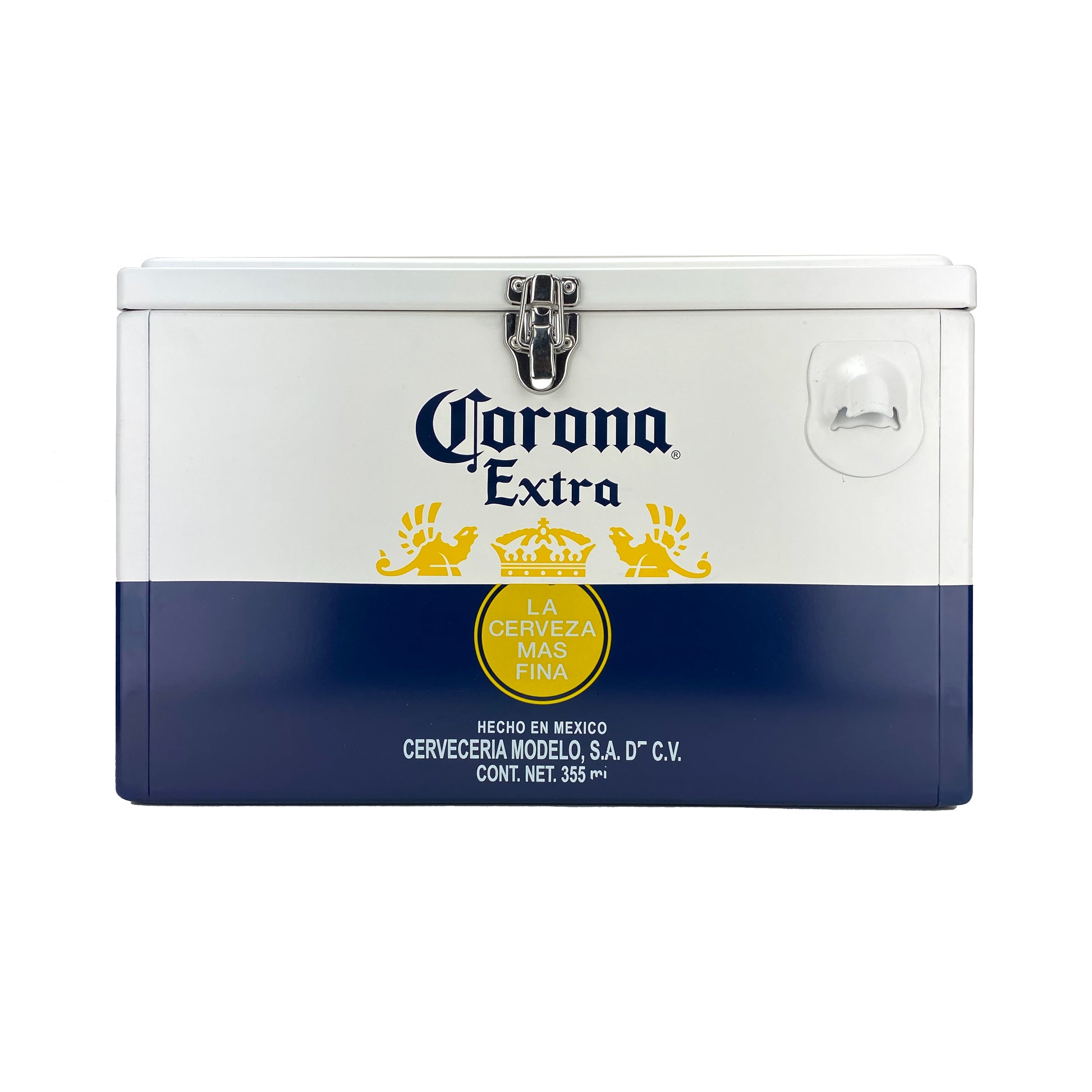 Mantén tus bebidas siempre frías con esta hielera portátil Corona Extra de 20 litros. Construcción metálica ultra resistente, incluye desagüe, asas ergonómicas y destapador integrado. Perfecta para eventos, playa o reuniones al aire libre.