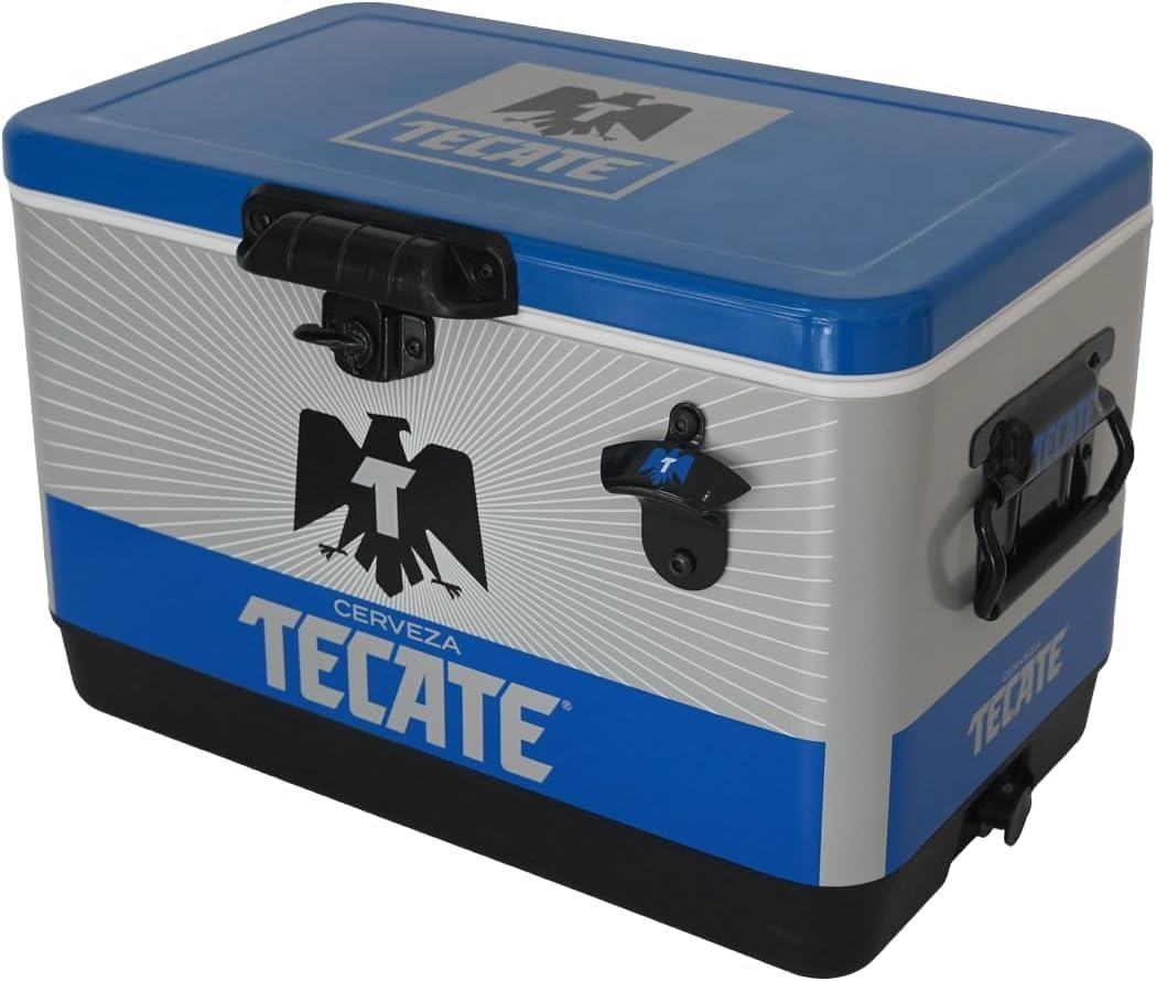 - DISEÑO RETRO EXCLUSIVO TECATE: Luce un estilo vintage clásico con el logo oficial de Tecate sobre un cuerpo metálico de alta resistencia en color azul vibrante.